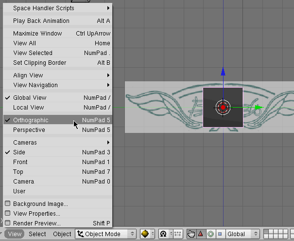 カメラが平行投影だと(?)カメラビューにも貼りついたように下絵が表示されるみたいです。